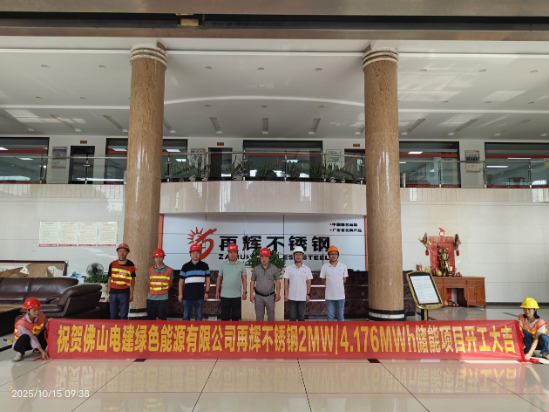 10月15日,在佛山市南海再輝不銹鋼制品有限公司內(nèi),由佛山電建集團有限公司下屬企業(yè)佛山電建綠色能源有限公司(簡稱:綠能公司)投資建設的儲能項目舉行簡潔而隆重的開工儀式。 圖:再輝儲能項目開工現(xiàn)場 這一項目的啟動,不僅為傳統(tǒng)不銹鋼生產(chǎn)注入了